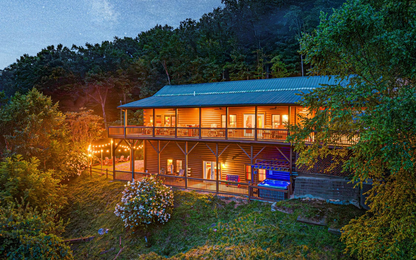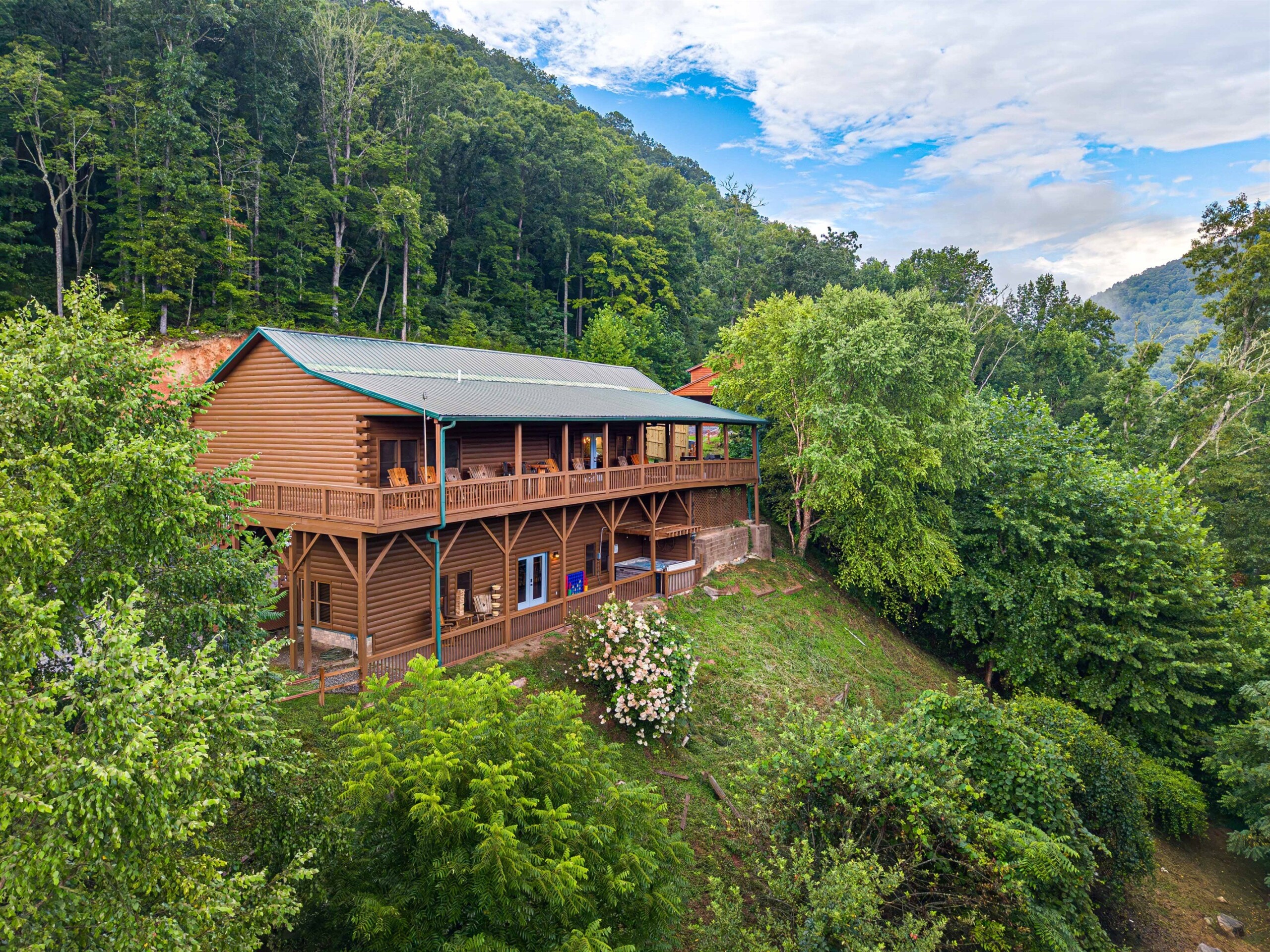 A luxurious five-bedroom, three-and-a-half-bath mountain retreat with some of the most breathtaking layered views in the Smokies.